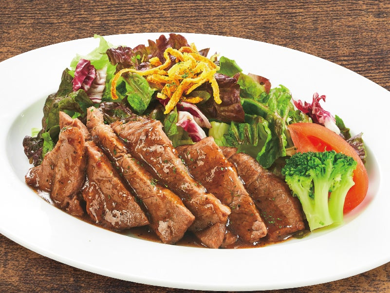 今までありそうでなかった、ワンプレートでサラダとステーキが一度に楽しめる商品です。