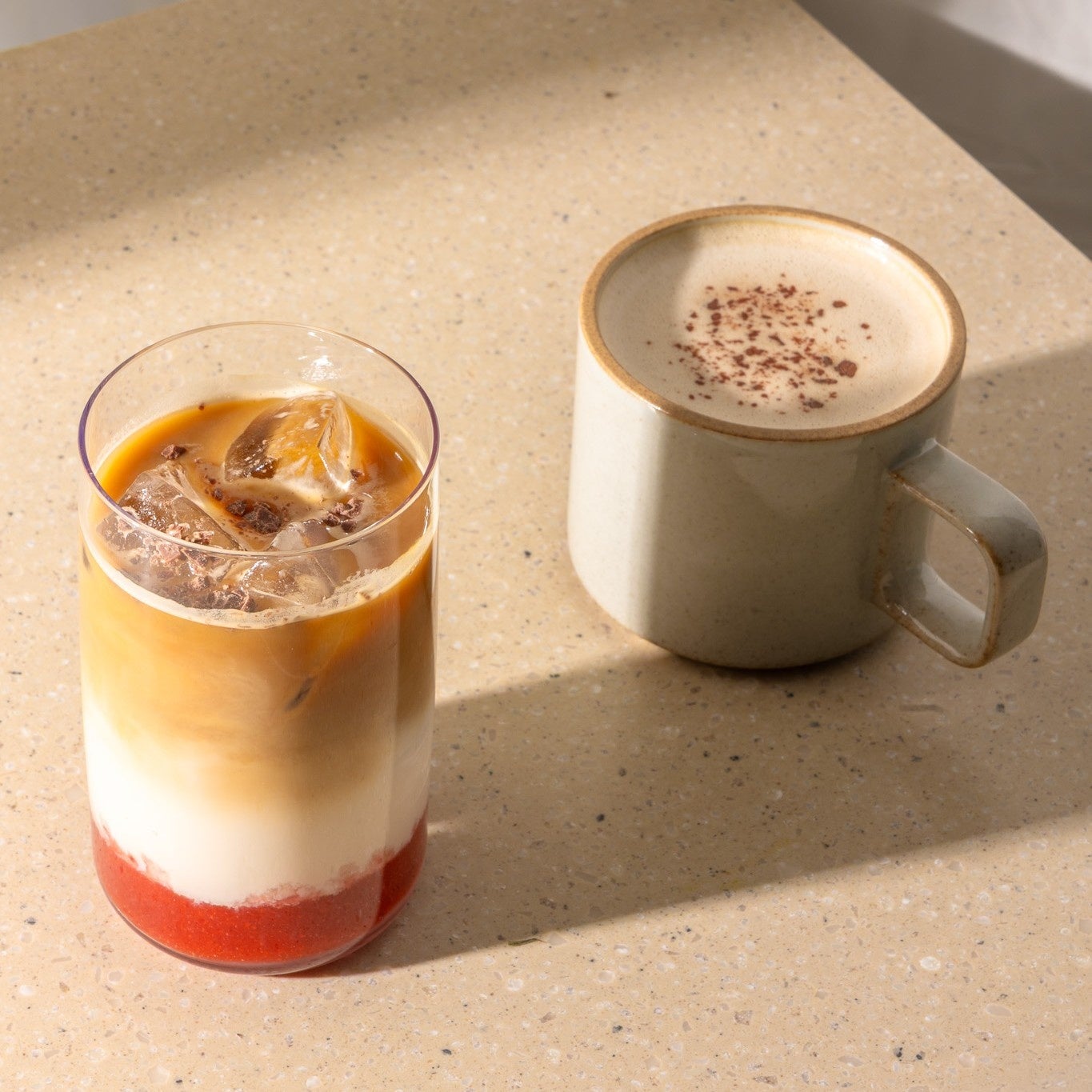 香り立つエスプレッソに、濃厚なストロベリーピューレとやさしい甘さのオーツミルクを合わせ、仕上げに刻みチョコレートをトッピング。コーヒーが得意でない方にも飲みやすい、まろやかな味わいに仕上げました。いちごの甘酸っぱさ、コーヒーの香ばしさ、チョコの食感が心地よく重なる、“大人のデザートドリンク”です。ホット、アイスをご用意しています。