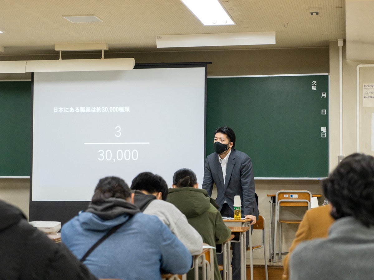 今回の授業は、めずらしい・なるのが難しいと思われてる職業になぜ(どのように)たどり着いたのか、「好き・得意・趣味」を職業にすることの違いや、困難・めずらしい職業ならではの魅力や課題などを、進路に悩む高校3年生の生徒の方々に理解していただくのが目的となっております。