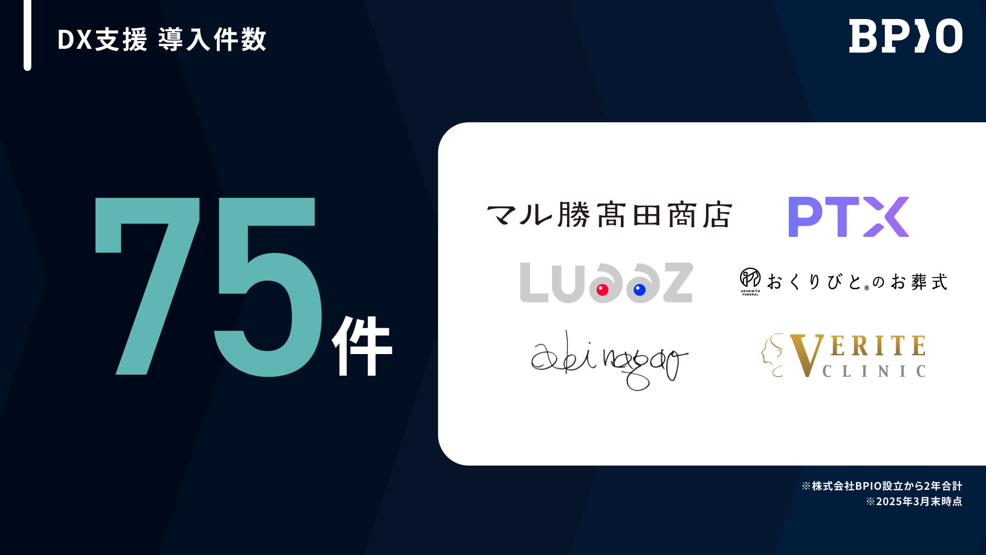 また、バックオフィス業務のDX支援は累計75件を達成いたしました。これまではBPO業務を前提としたご支援が中心でしたが、直近は業務設計・DX支援のみのご支援も増えております。