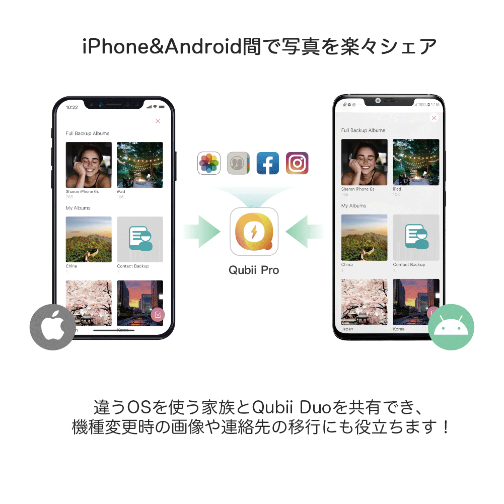 スマホの容量がいっぱいで写真が撮れない、バックアップしなきゃいけないのは分かっているけど方法がよく分からない、パソコンに繋いだりするのは面倒、「Qubii Duo」はそんなお悩みを解決します。