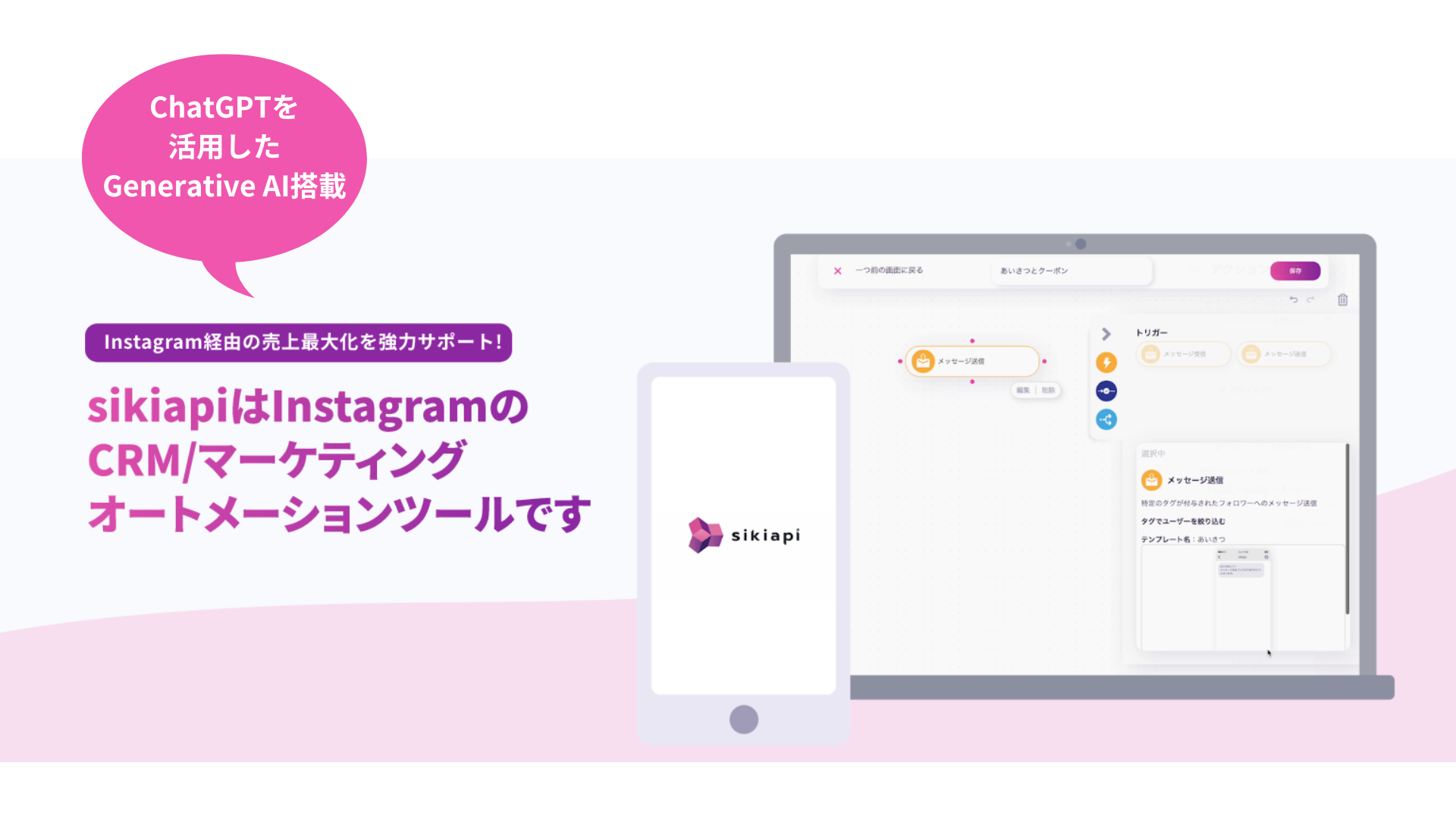 InstagramのCRMツール「sikiapi(シキアピ)」β版がユーザー体験の向上と工数削減が期待できるChatGPTを活用したGenerative AIによる返信の提案機能を提供開始