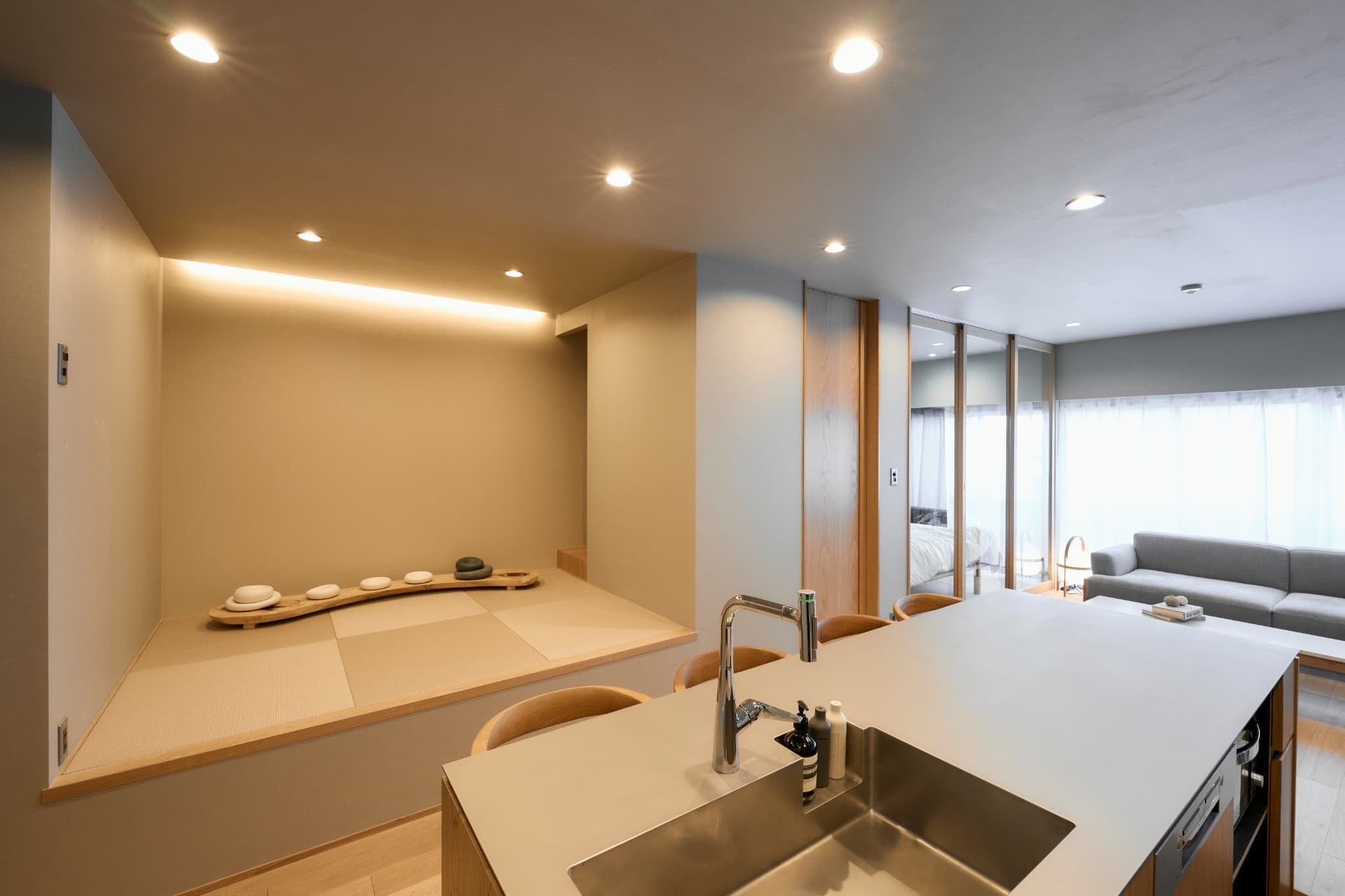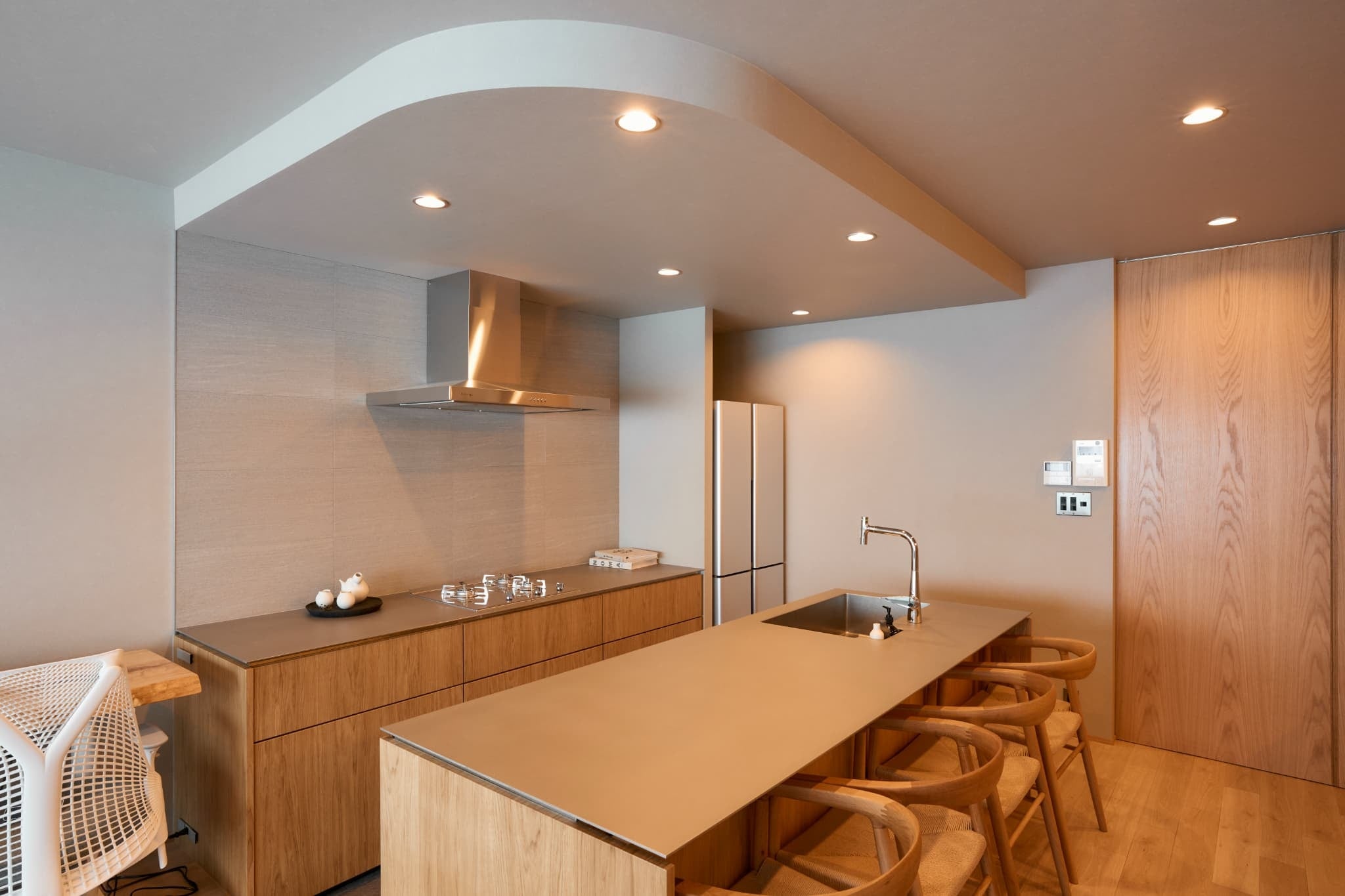 なお、本物件は設計を担当した辻氏の自宅兼オフィスとして活用する予定で、4人掛けのカウンターキッチンやパーテーションで区切られた寝室なども特徴となっています。