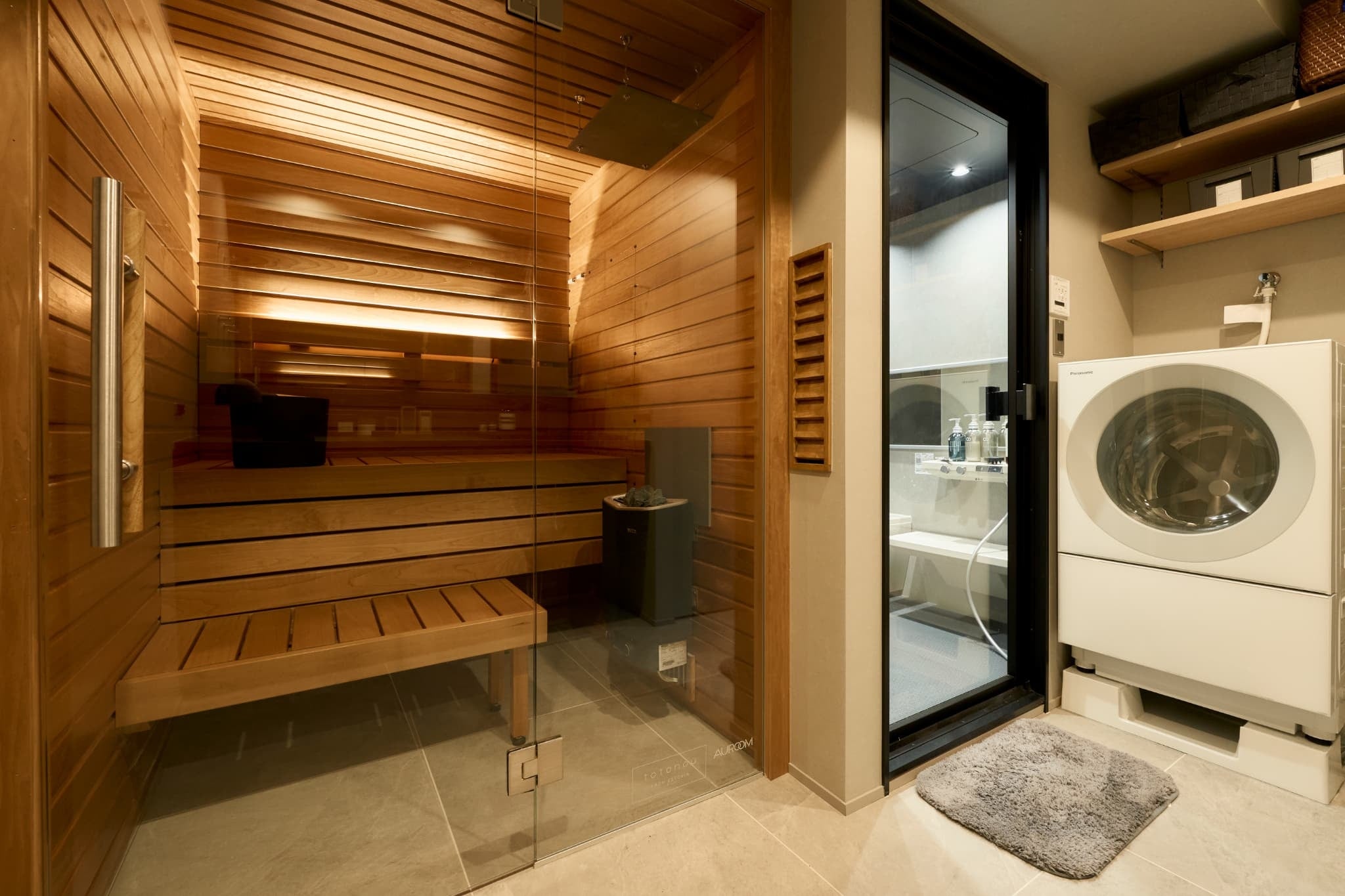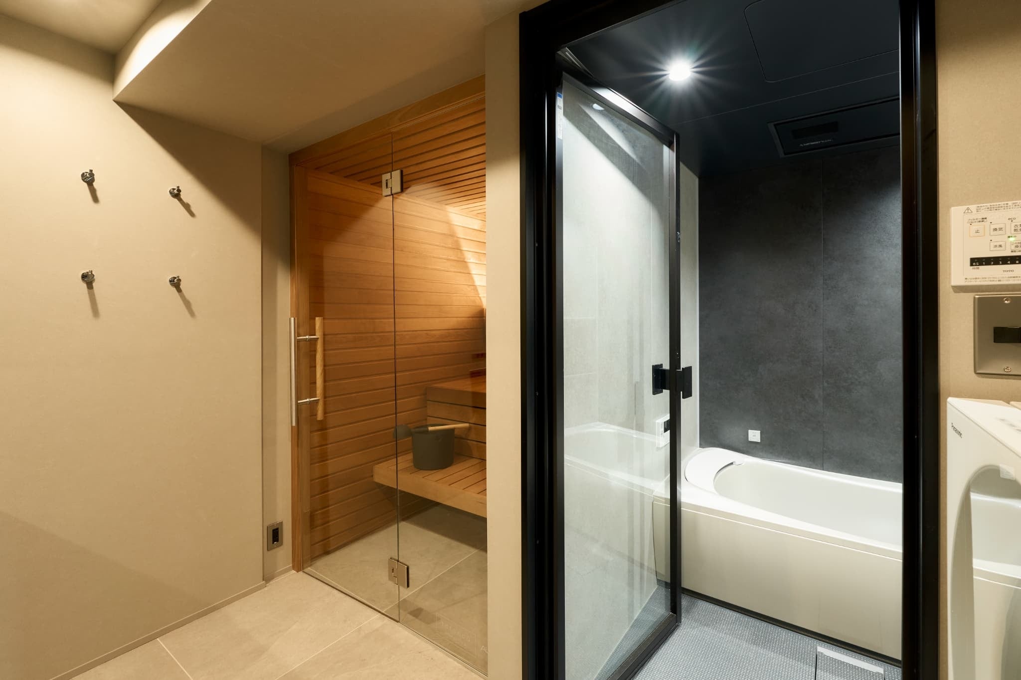 ユニットバスに隣接する形で本格仕様のサウナを設置