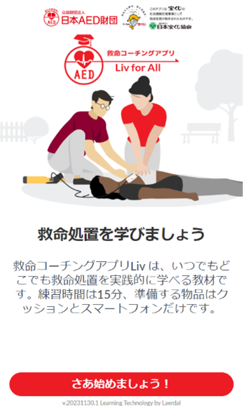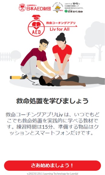 日本AED財団は、2024年1月19日に救命コーチングアプリLiv for Allを一般公開します(救命の最初の行動である119番通報にかけ合わせて、1月19日のリリースとしました)。救命コーチングアプリLiv for Allは、AEDを用いて命を救う救命処置を、オンライン、無料、15分で学習できる革新的な自己訓練ツールです。