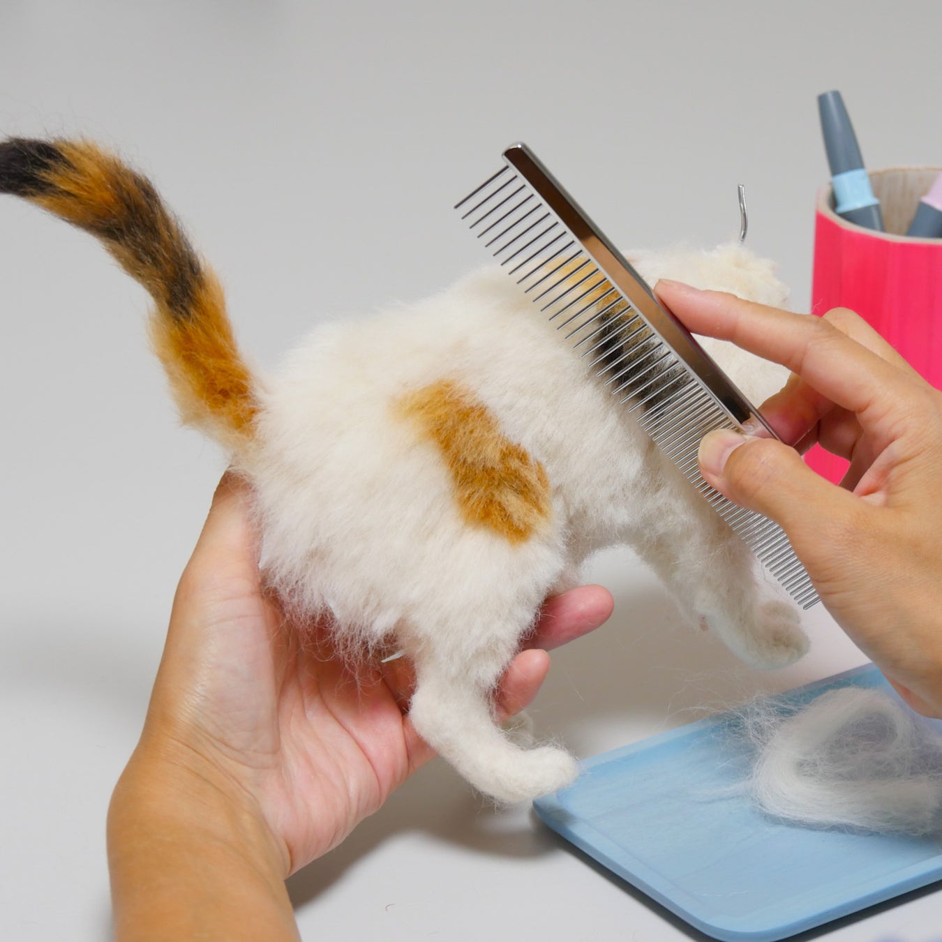 ぱっと見ただけでは区別が難しいほど、リアルさを追求した一体の三毛猫を羊毛フェルトで制作するクラス。血の通ったような表現方法や袋耳の作り方など、ディテールにこだわった作品を極めたい人や、仕上がりのレベルを高めたい人など、羊毛フェルトの経験者におすすめのクラス。