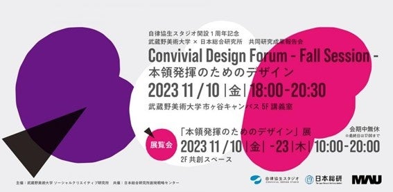 自律協生社会(Convivial Society)とは、自律的・主体的に生きる個人が、他者や自然やテクノロジーと力を合わせて生きる中で生まれる、生き生きとした喜びに満ちた社会のことです。行政や企業に任せきりにせず、住民たちが力を合わせ、自分たちの暮らしを自分たちで和気あいあいと守り育てる社会。業界や世代を超えて人々が連携し、どのような人にも居場所と出番があって、それぞれがそれぞれに本領を発揮して生きる社会。自律協生という言葉に託してそのような社会の実現を目指す上で、社会造形としてのデザインには何ができるのか、誰のために何を実現すべきなのかについて、私たちは探求しています。本発表会では、共同研究プロジェクトのうち3つを取り上げ、研究内容とここまでに得られた成果・仮説をご報告します。