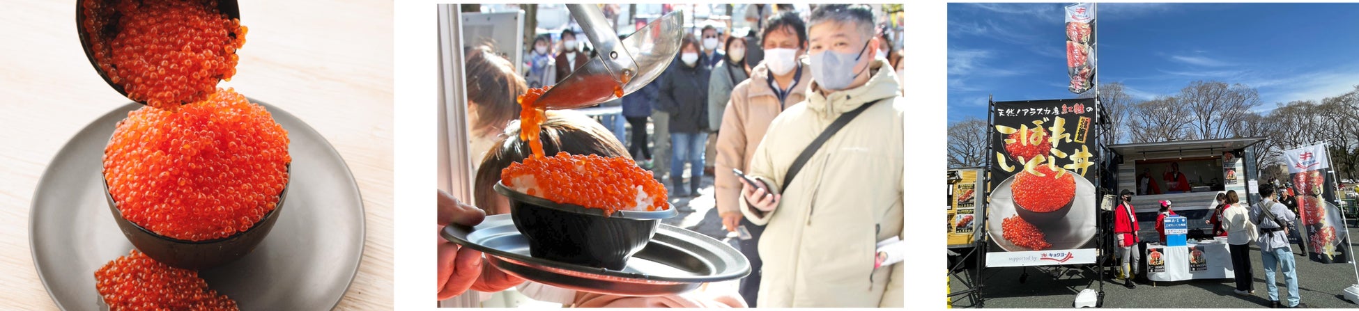 ルビー色に輝く、アラスカ産紅鮭イクラが贅沢にこぼれ落ちる!フェスで1番人気を争う「こぼれいくら丼」