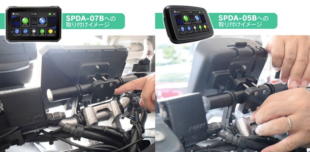『SPEEDER』のバイク用ディスプレイオーディオ(SPDA-05B、SPDA-07B)に、2種類の別売りマウントキットが登場