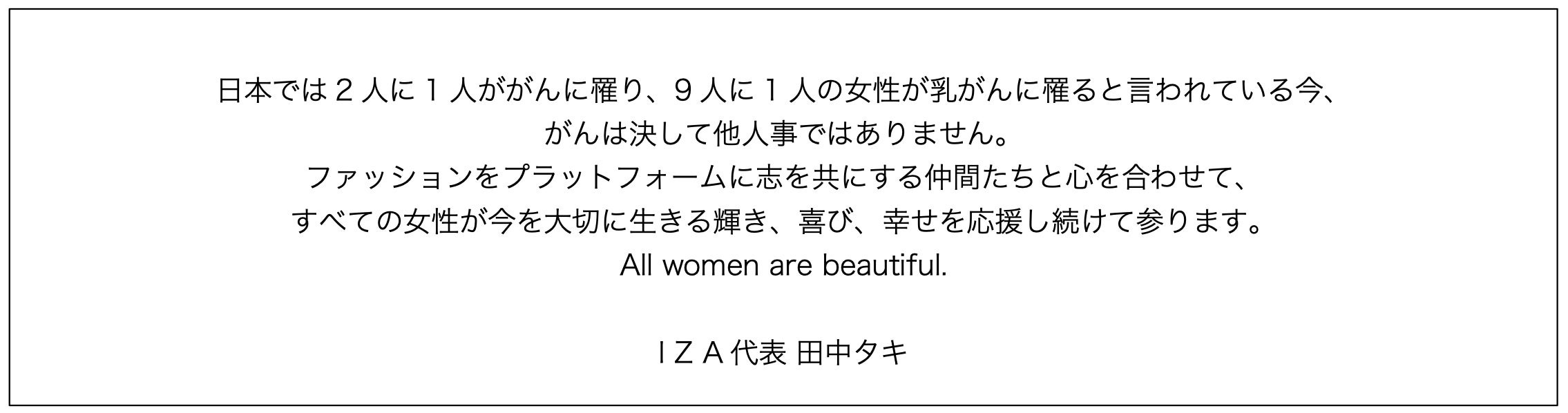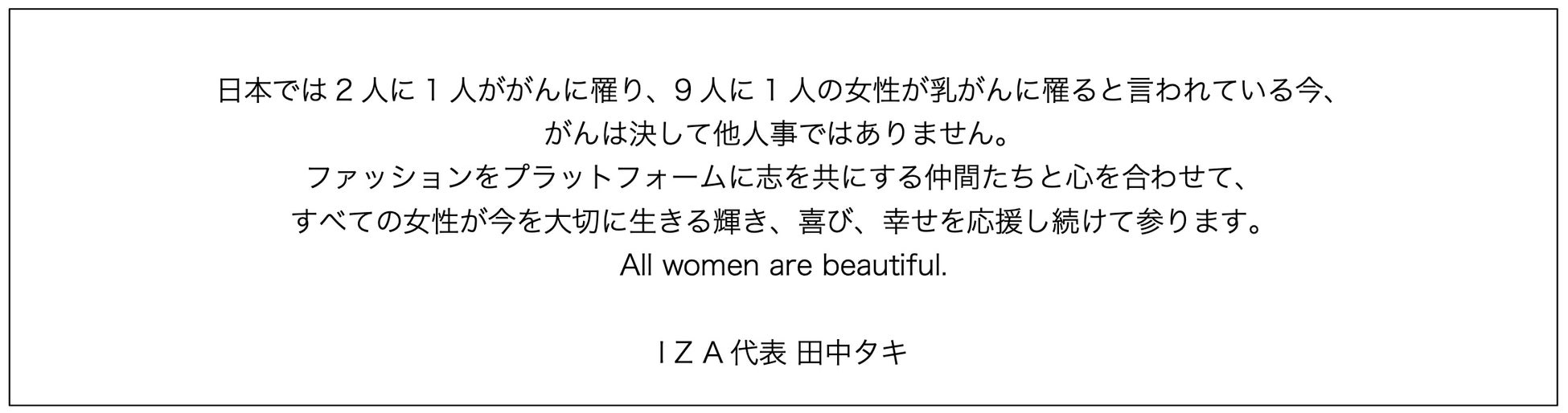 またI Z Aは2022年12月22日(木)、女性の幸せを応援するファッションチャリティイベント「I Z A PINK CHRISTMAS®」を開催予定です。同イベントでも、乳がんの早期発見・診断・治療の大切さを伝える啓蒙活動のピンクリボン運動、そして今回発足した「THE BRA」に連動した企画を予定いたしております。