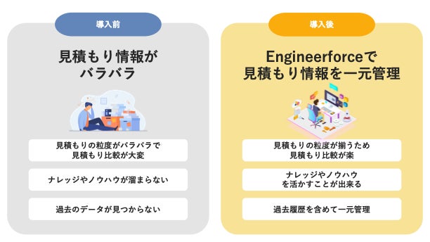 株式会社Engineerforceは、SIerをDXするというミッションを掲げ、SaaSに特化した受託開発やSIerに特化したコンサルティング、自社プロダクトとして見積もりから経営改善を出来る「Engineerforce」の開発を行なっております。本システムは見積もり作成に関わる手間や負担を減らし、ITエンジニアの生産性の向上を図るツールで、見積もりに関する情報をSaaSモデルで提供することにより、情報の一元化や共有をスムーズに行うことができます。