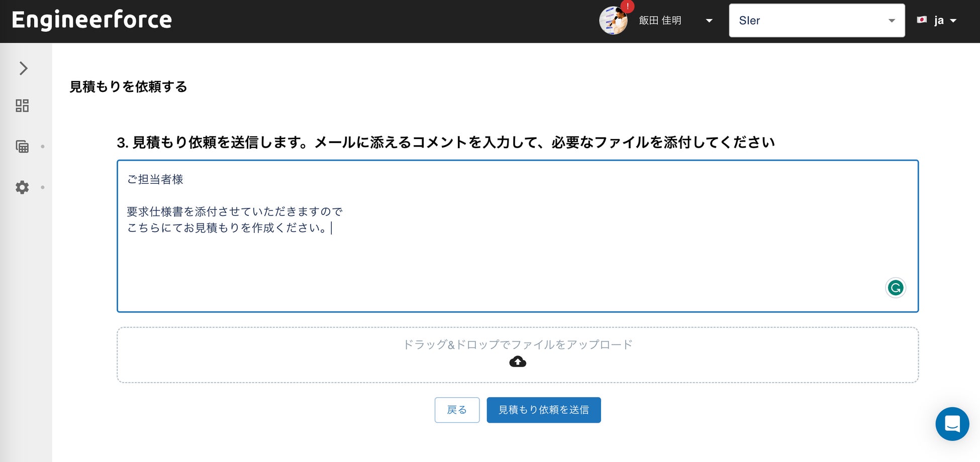 各ベンダーに対して見積もり依頼を実施することが出来るようになりました。