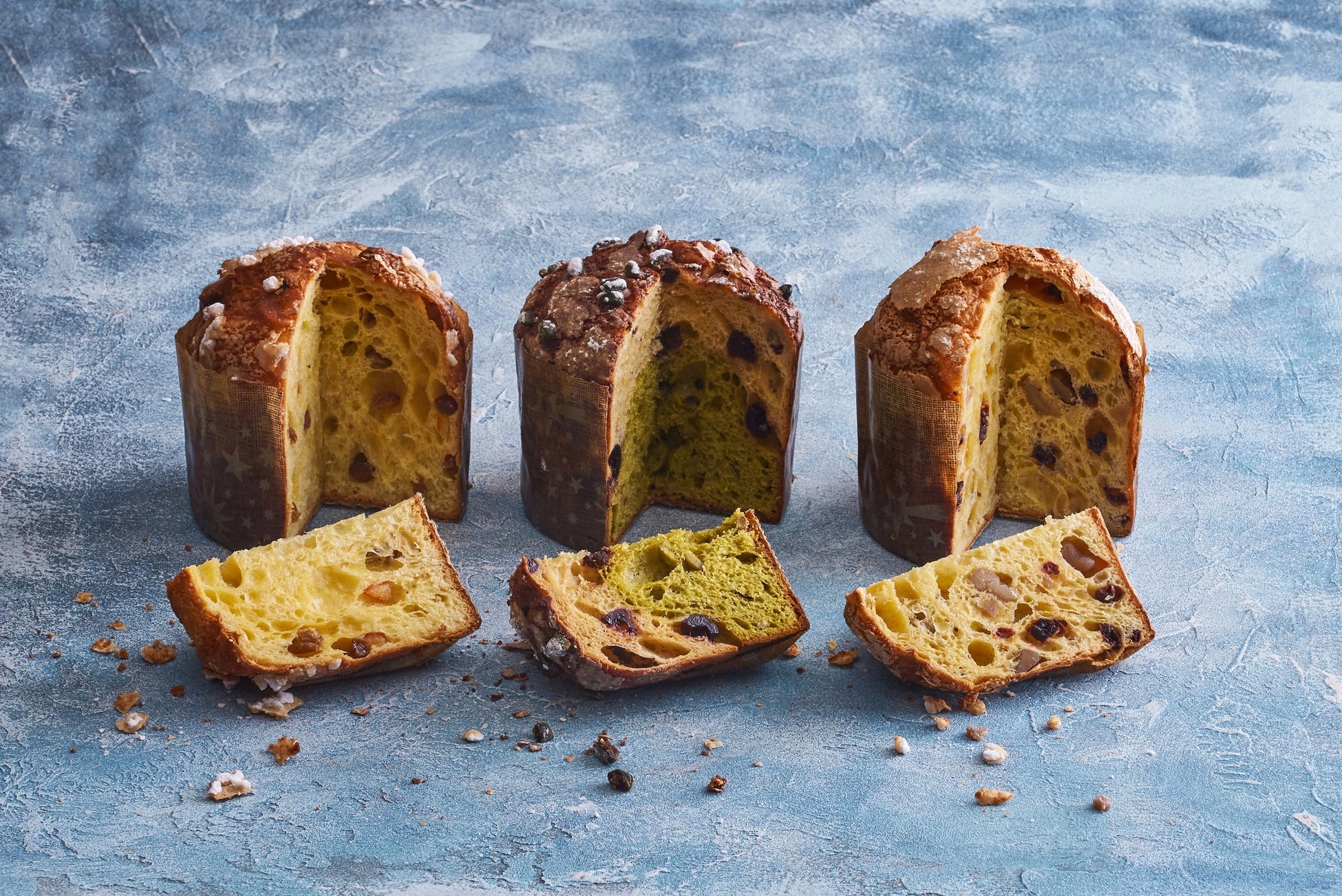 「アマレナチェリーとピスタチオのパネットーネ」(中央)