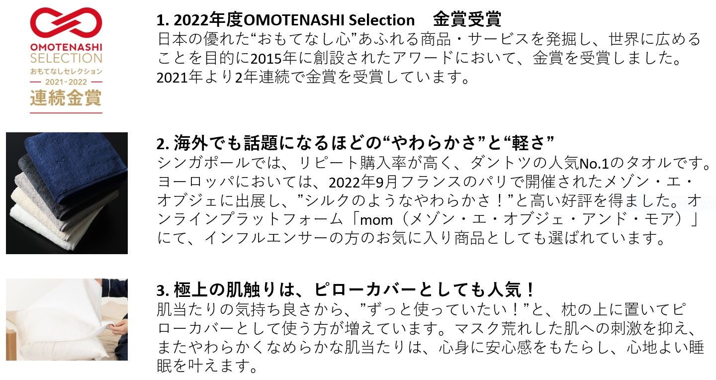 取り扱いアイテム:タオル、タオルハンカチ、バスローブ、パジャマ、リラクシングウェア、ベビーアイテムなど