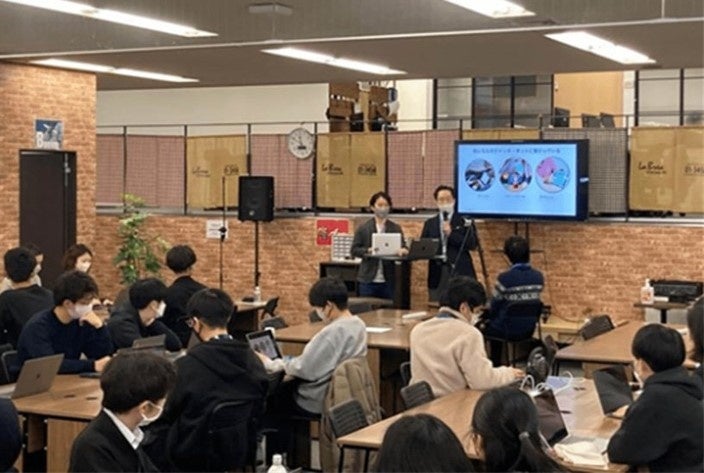 下作延小学校5、6年生に向けてプレゼンテーションやクイズを織り交ぜながら授業形式で実施