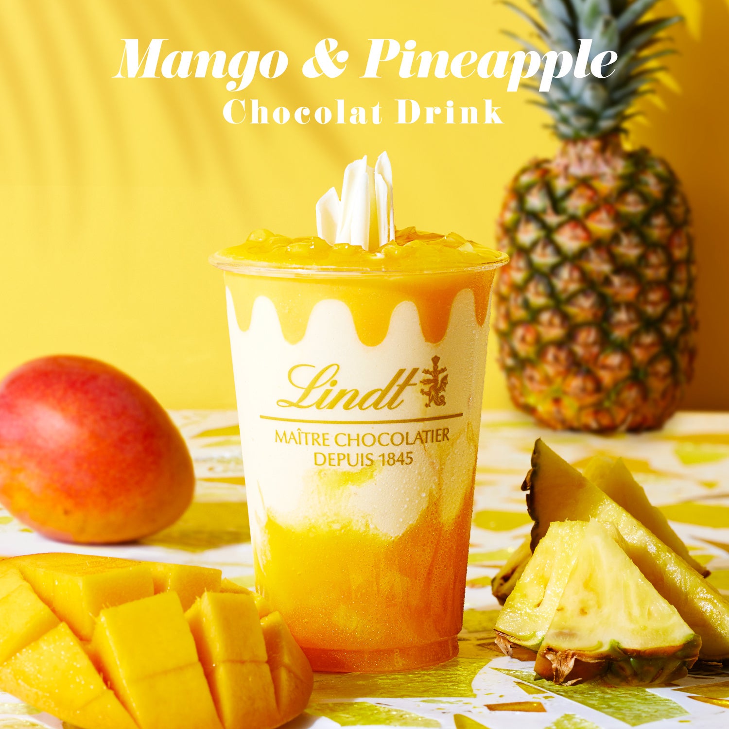 アルフォンソマンゴーの濃厚な甘みと爽やかなパイナップルの贅沢果肉「リンツ」から「マンゴー&パイナップル ショコラドリンク」が新登場!