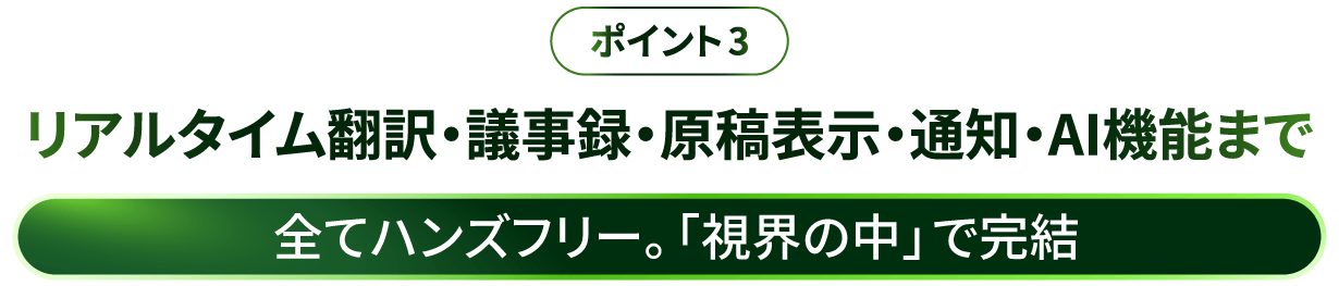 SABERAは、仕事の中で必要とされる機能を一つの眼鏡に集約し、視線を外さず、自然に利用できるように設計しています。