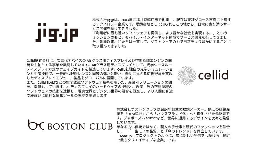 株式会社jig.jp(本社:福井県鯖江市、東証グロース市場:5244、以下「当社」)は、当社が開発を進めるスマート眼鏡(ARグラス)事業において、ARグラスブランド「SABERA(サベラ)」に関するメディア向け新製品発表会を開催し、ブランドおよびプロトタイプの初披露を行いました。