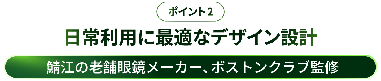 世界水準のデザイン力を有し、鯖江の老舗眼鏡メーカーのボストンクラブ監修のもと、長年培われてきた「かけ心地」や「軽さ」、「日常へのなじみやすさ」を継承しながら、スマート眼鏡の機能性を融合しました。スマート眼鏡であることを感じさせないデザイン設計とし、自社独自の日常に自然に馴染む、時代を超えたシルエットを実現しております。