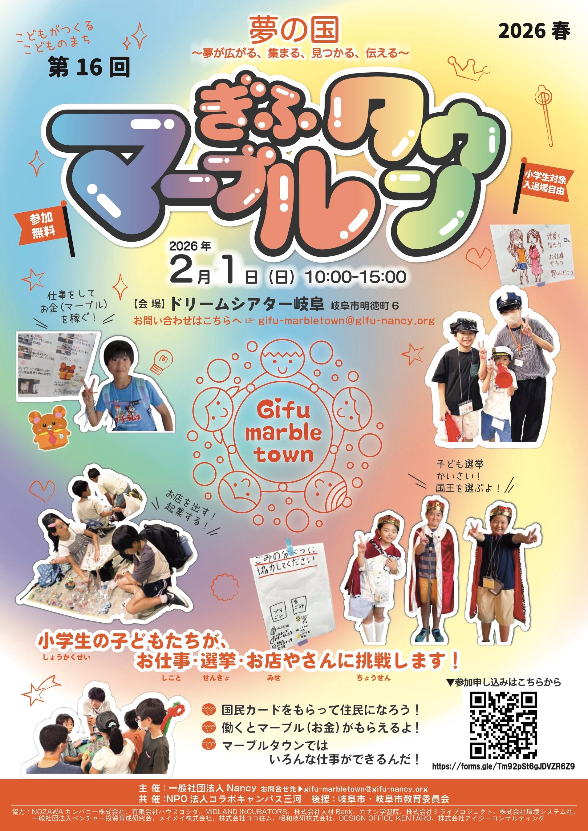 仕事に選挙に起業…岐阜の子どもたちの夢が、広がる、集まる、見つかる、伝える!「第16回ぎふマーブルタウン2026春」2026年2月1日開催