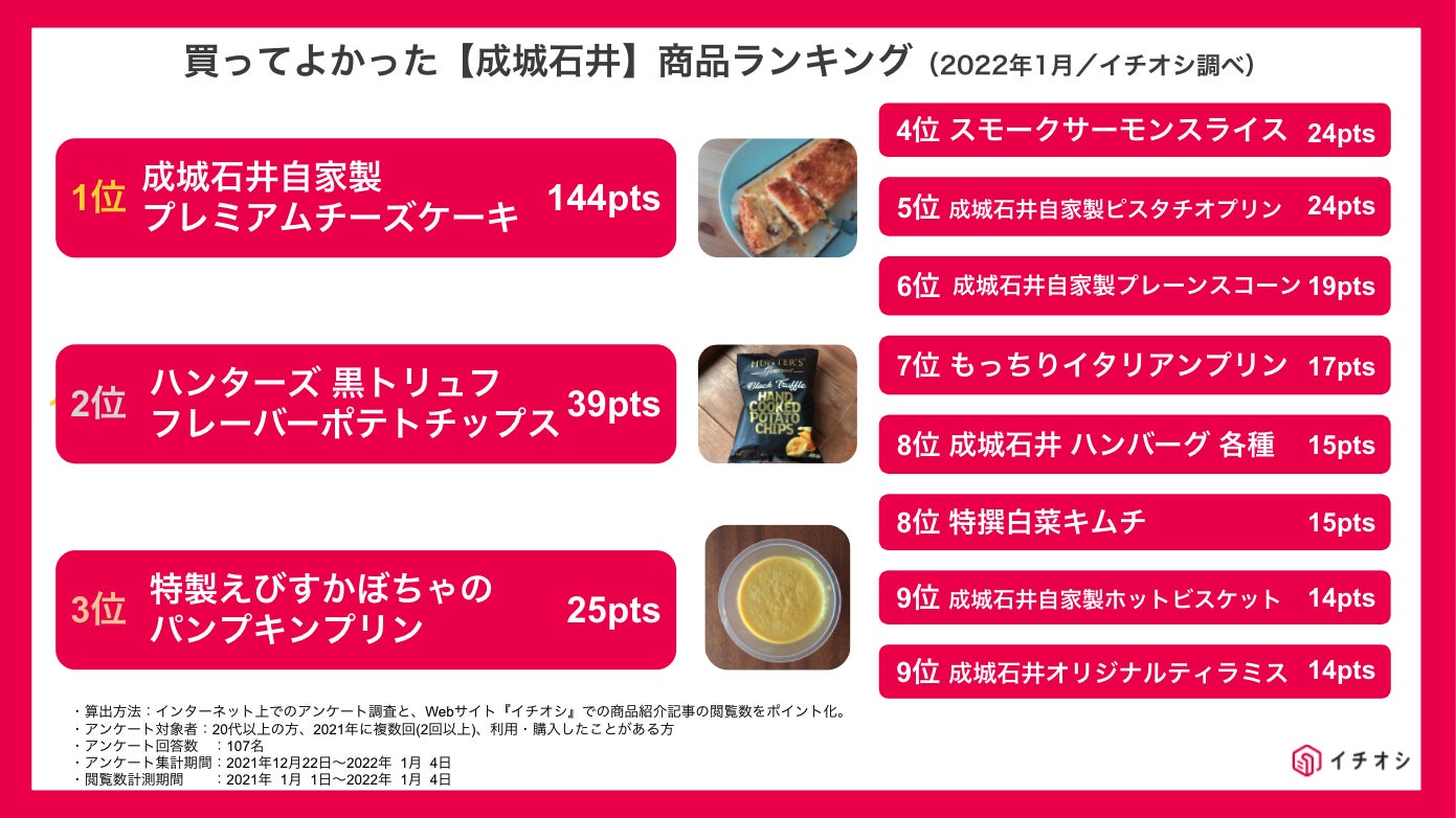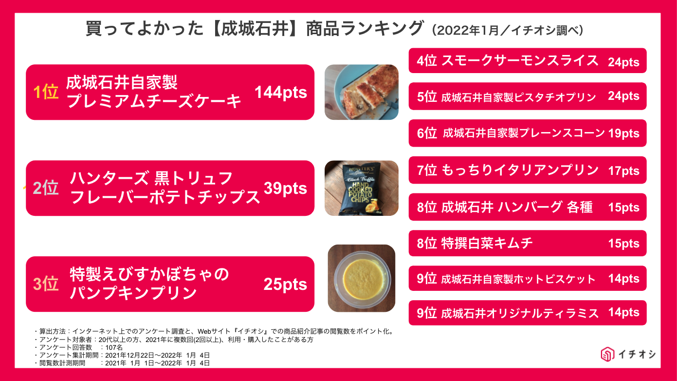 イチオシさせていただいた「プレミアムチーズケーキ」が人気1位になったのはもちろん、2位の「黒トリュフポテチ」も薫り高くて美味しく、ファンなら誰しも「やっぱり上位!納得!」と盛り上がれるランキングになったのではないでしょうか。
