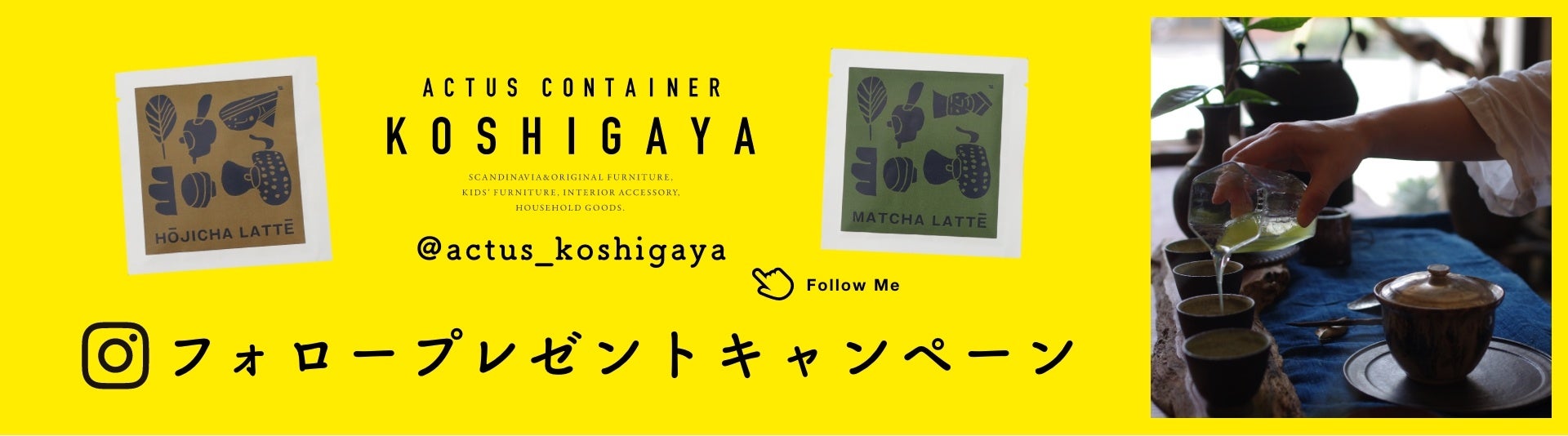 2024年4月14日(日)まで期間中に、アクタスコンテナ・越谷店のインスタグラムアカウント< @actus_koshigaya >をフォローして店頭でご提示いただいた先着300名様に、心にも、身体にも、優しいお茶を中心とした暮らしを提案する「茶屋すずわ」のほうじ茶ラテまたは抹茶ラテを差し上げます。