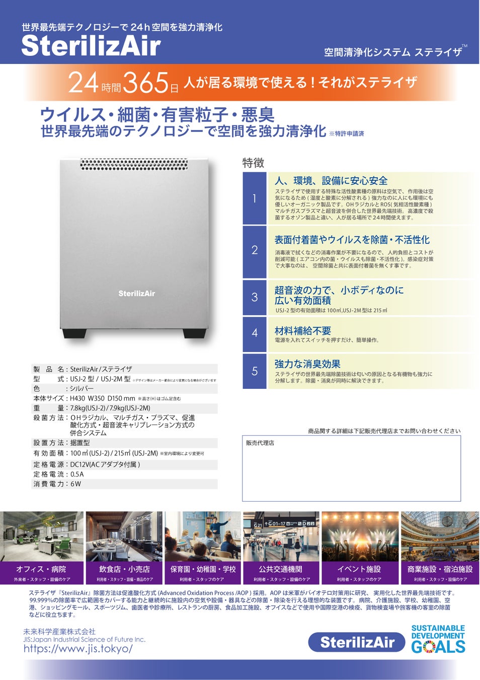 空気清浄機などの従来品では除菌できない「表面付着菌」に対して効果があり、モノの表面を含む空間内のウイルスや細菌を完全に清浄化する高い除菌効果がありながら、24時間365日、人々が活動する空間で使用できることが最大の特徴です。