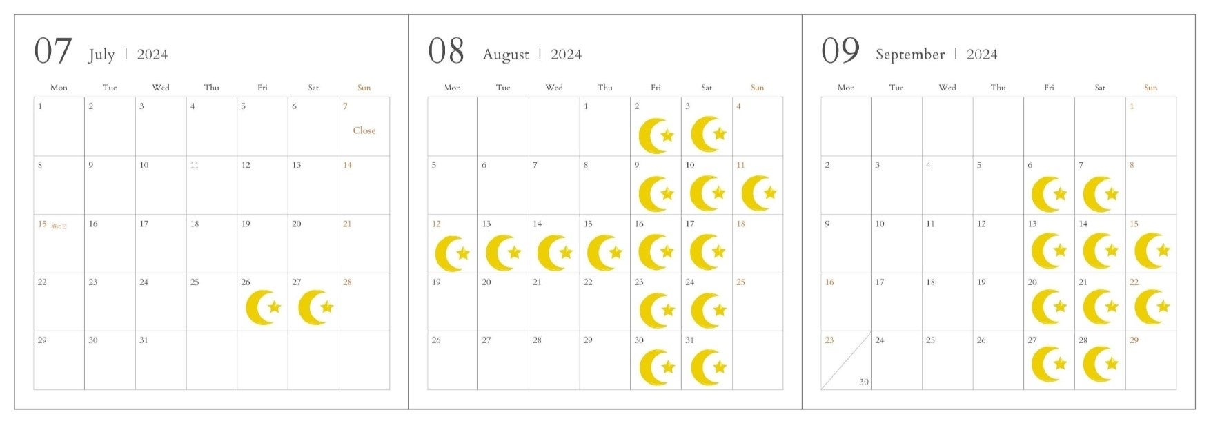 【オールナイトプラン実施日】2024年7月22日~9月30日までの間(★実施日は下記カレンダーのとおり)