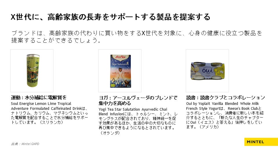 【市場調査会社ミンテル】育児と介護のダブルケアで消耗するX世代向けに提案する健康寿命を伸ばすための食品・飲料開発