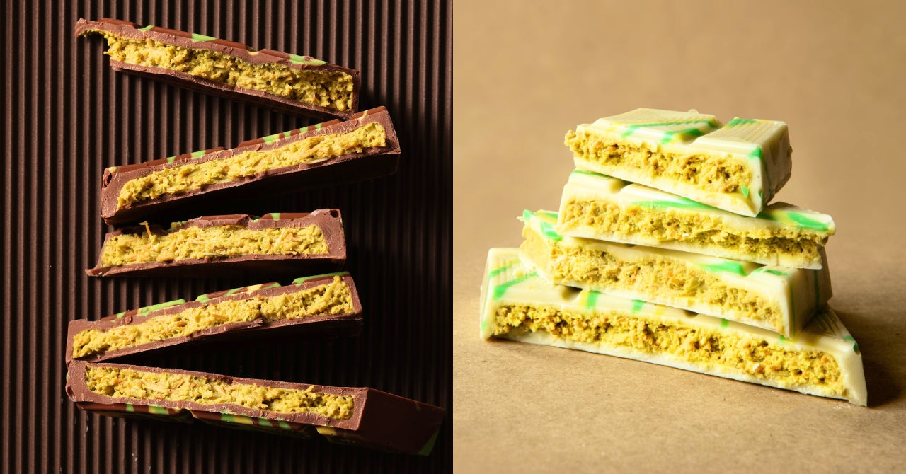 チョコレートの優しい甘さと、濃厚なピスタチオ、そしてカダユフのサクサク食感がくせになる新感覚スイーツの「ドバイチョコレート」。
