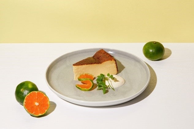 ・「白ねりごまのバスクチーズケーキ小豆島産青みかんの豆乳ホイップ添え」