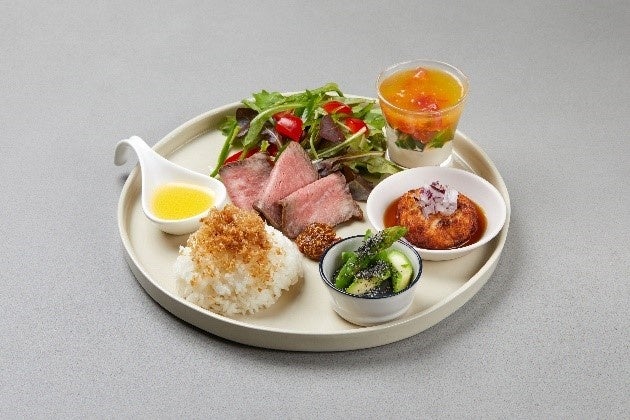 また、フードメニューは8月11日(金)より提供開始予定で、「オリーブ牛のローストビーフと鱧の贅沢プレート」は、鱧やアスパラガス、もろみ味噌など、計5品+ソース、全てに小豆島の食材を使用したスペシャルなプレートです。小豆島の食材とごまの魅力をたっぷりとお楽しみいただける1品に仕上げました。