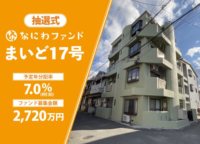 【予定年利7.0%(税引前)】なにわファンド初の解除希望受付期間付きファンド『まいど17号』2月17日(月)募集開始!