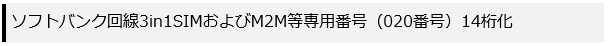 ソフトバンク回線の3in1SIM提供およびM2M等専用番号(020番号)の14桁発番のお知らせ