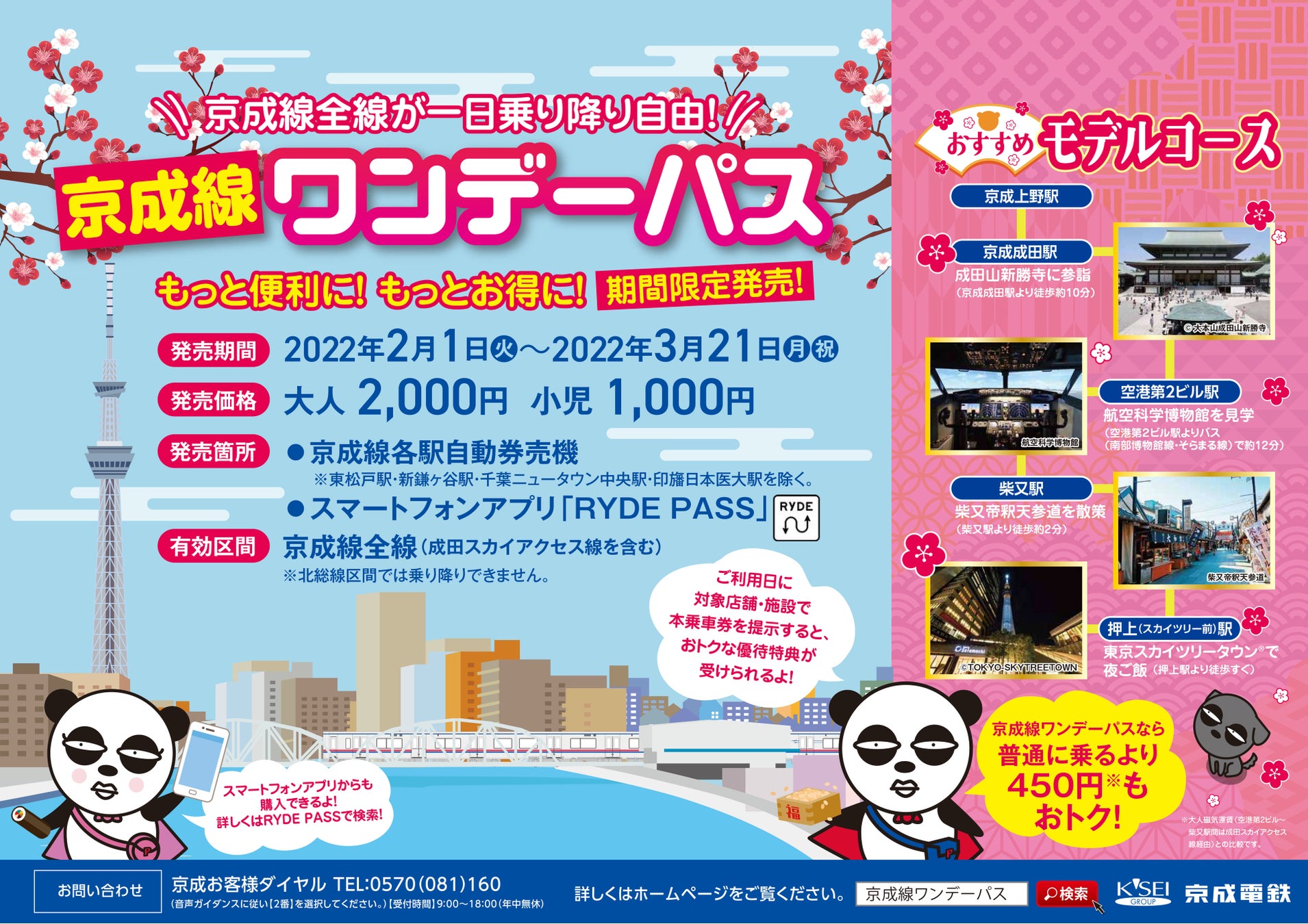 二次交通のDXを推進するRYDE株式会社(本社:東京都渋谷区、代表取締役杉崎正哉、以下「RYDE」)は、2022年2月1日(火)~2022年3月21日(月・祝)の期間中、京成電鉄の全線一日乗車券「京成線ワンデーパス」を、RYDEが提供するモビリティプラットフォーム「RYDE PASS」上で発売します。
