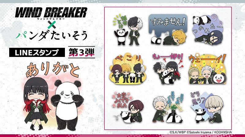 TVアニメ「WIND BREAKER」と絵本「パンダたいそう」からコラボスタンプ第3弾が登場!