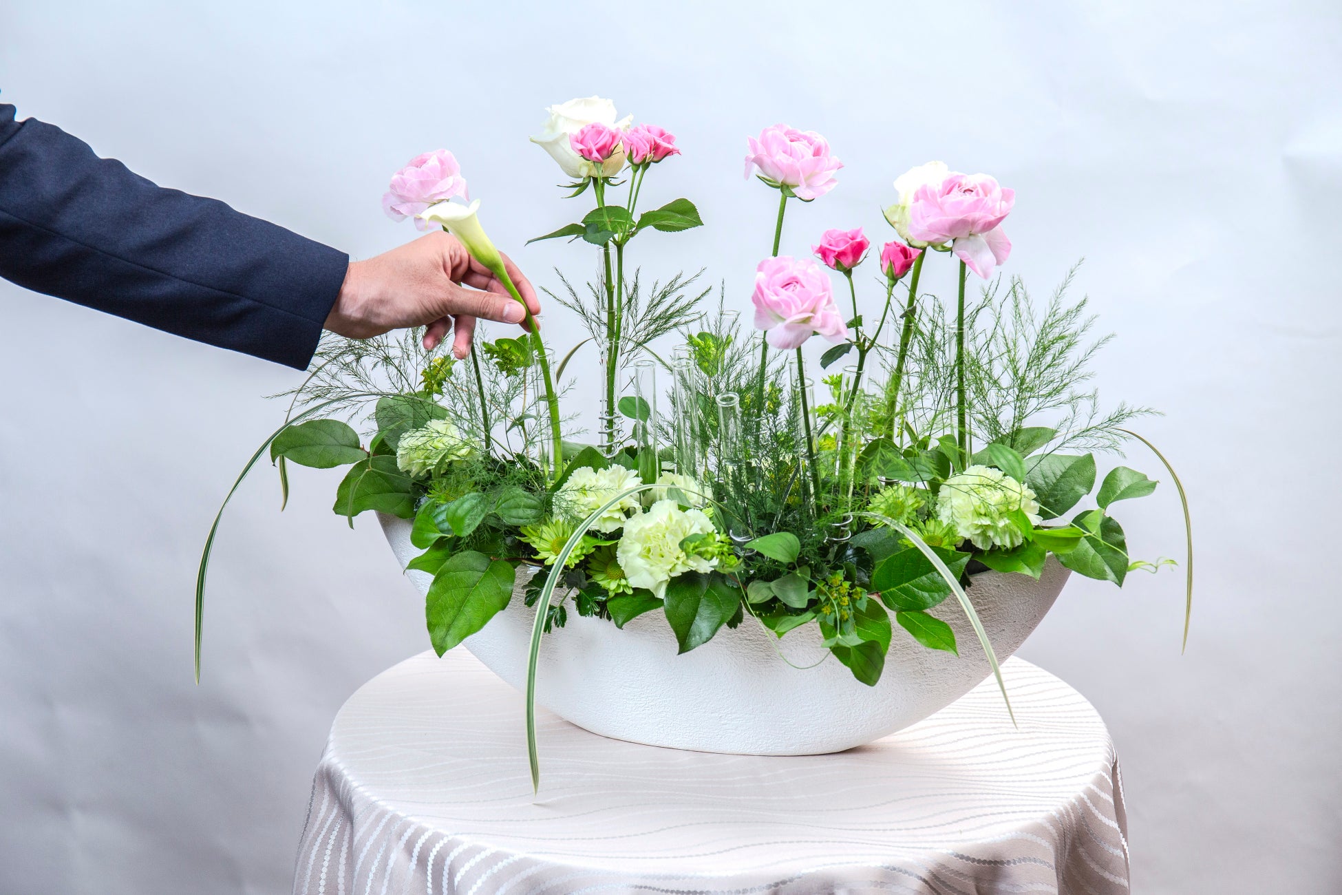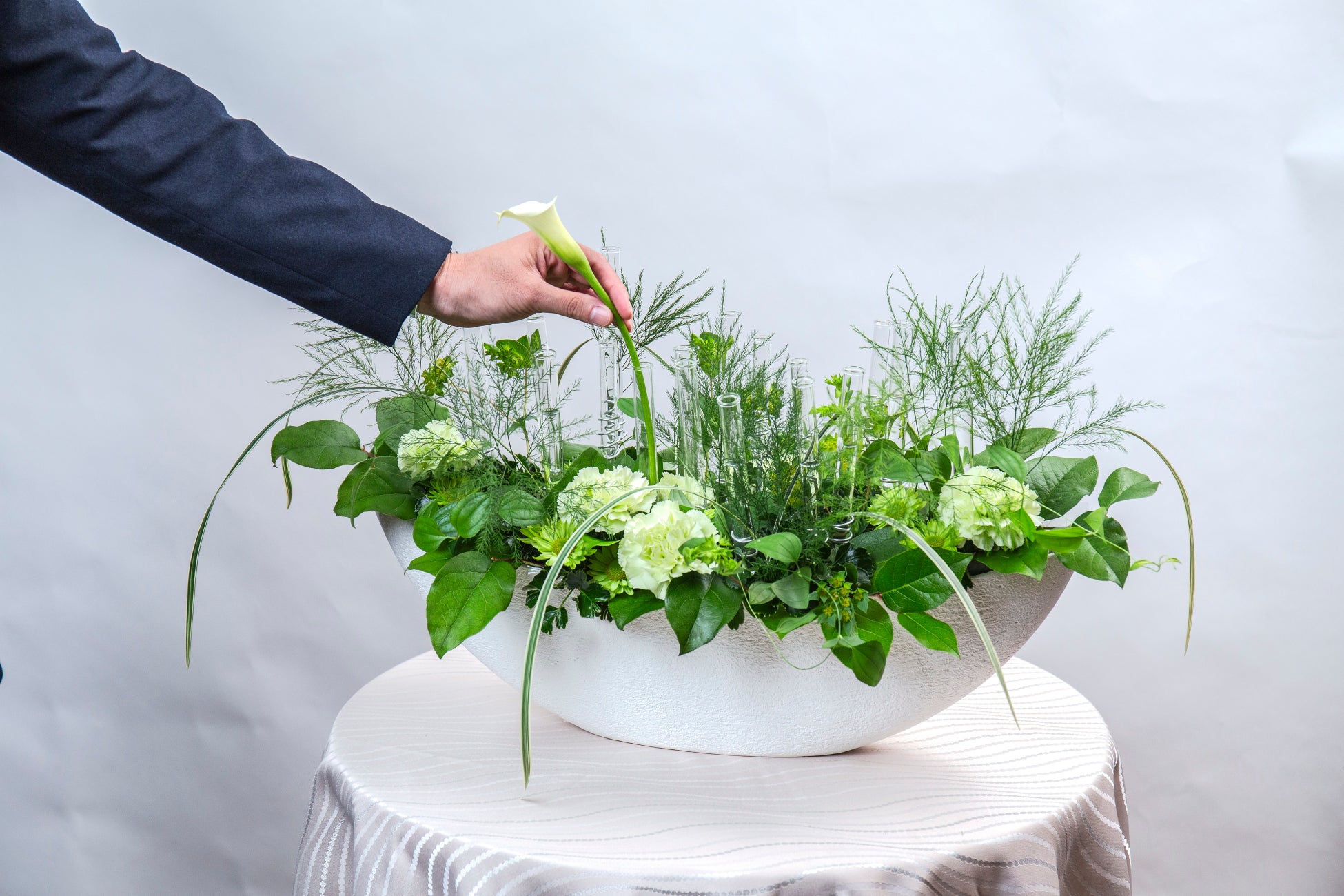 当社は長年手がけてきた装花のノウハウとデザイン力を活かし、2004年10月以来、お客様の望む葬儀を演出するお葬式サービスを展開してきました。葬儀を、故人を悼み送るだけの場でなく、ご家族が笑顔を取り戻すためのプロセスと捉え、故人にふさわしいお葬式・お別れの会をプロデュースしています。「さようなら」ではなく「ありがとう」という言葉とともに、美しい花を手向けて送ることができるお別れの時間をご提案します。