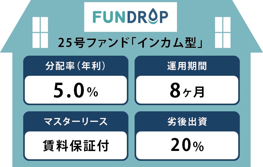 FUNDROP 25号ファンドは、利回り(年利)5%、賃料保証付きにて運用