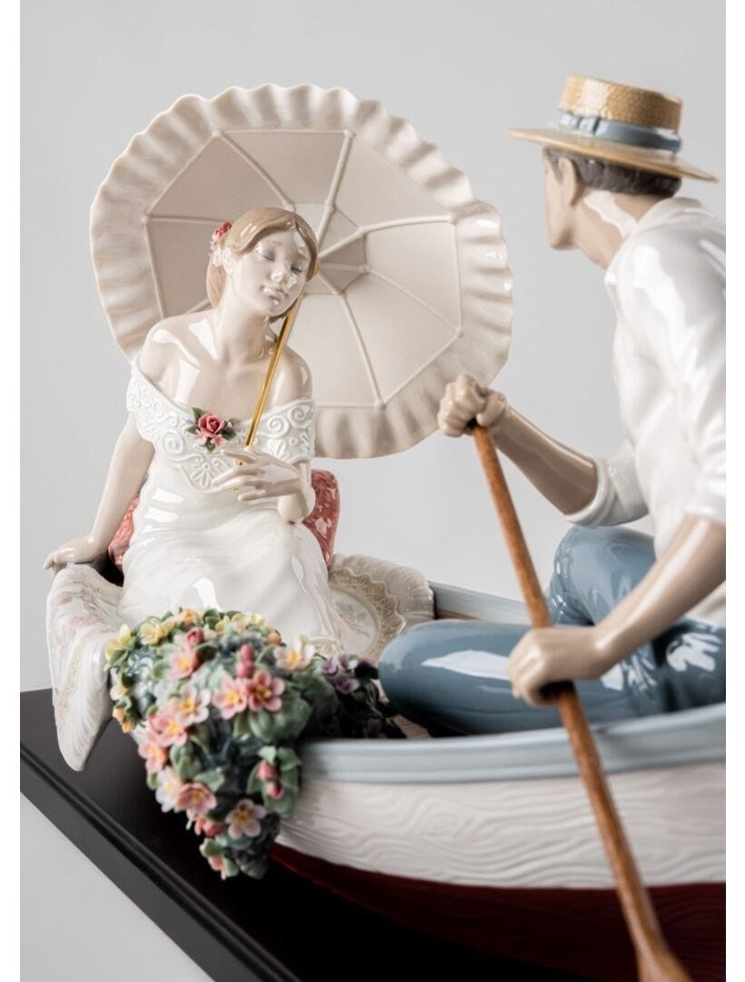印象派の巨匠で、スペインはバレンシア出身の画家ソローリャの画風からインスピレーションを受け、リヤドロの巨匠が、ロマンティックな船旅をするカップルを描きました。パステル調の柔らかな色彩と花々がリヤドロらしい、世界制作数3000個の限定品です。