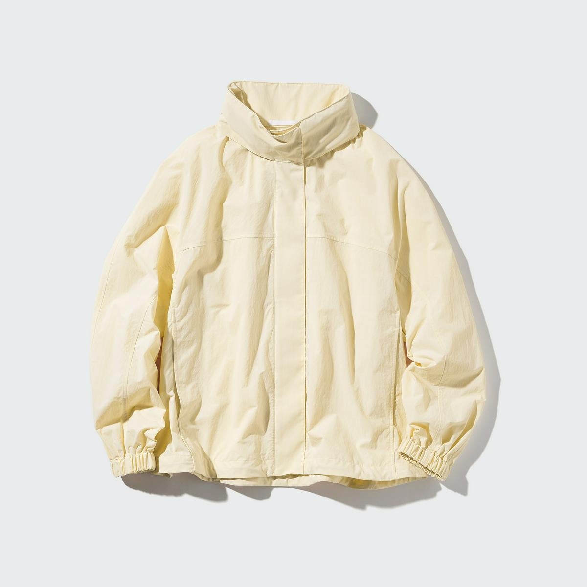 動きやすくリラックス感あるボックスシルエット。小雨程度の水をはじく撥水加工付き。東レの特殊技術「NANODESIGN™」を使用し、しなやかな風合い、ストレッチを実現。