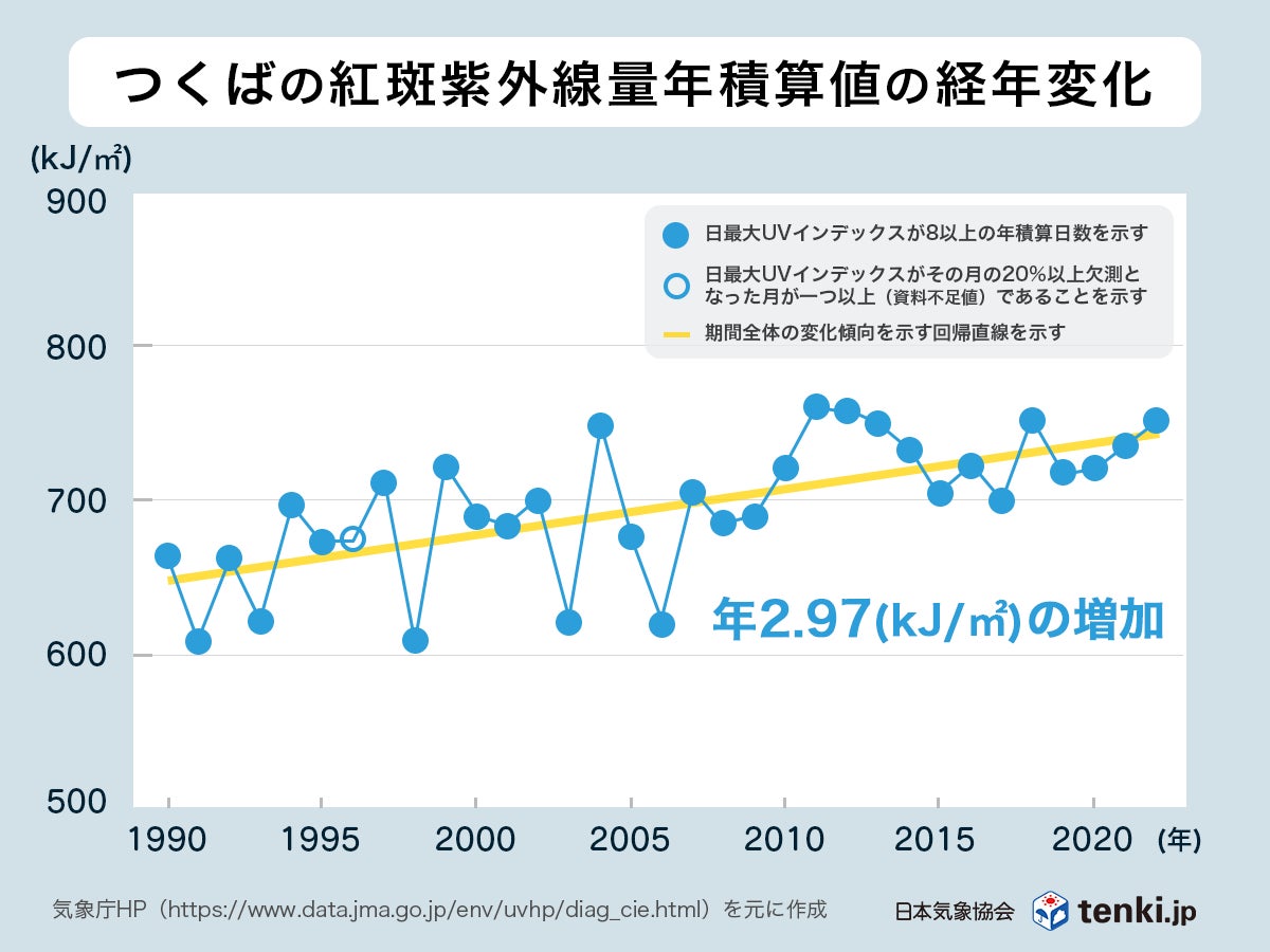 日本気象協会によると、「気象庁が観測を開始した1990年以降、紫外線量は年々増加。昨年の猛暑に続き、2024年は平年以上に気温が高くなる」と予想されています。