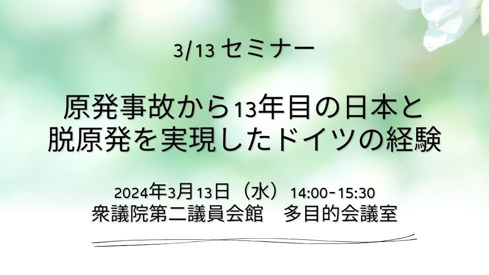 原発事故から13年に思いを寄せて、今の福島の状況を共有し、エネルギーシフトについて学ぶセミナーを開催します。