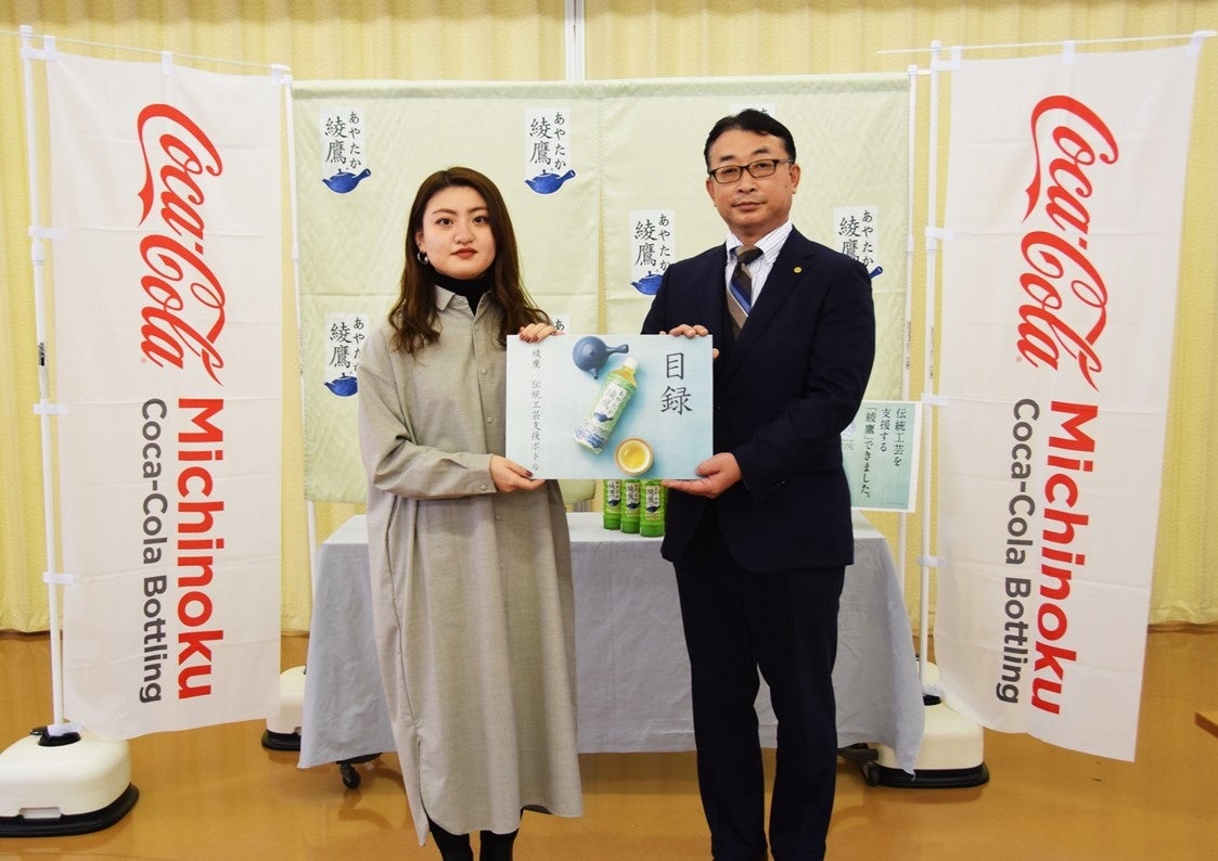このたび、みちのくコカ・コーラボトリング株式会社(本社: 岩手県盛岡市、代表取締役社長: 谷村 広和、以下「当社」)は、「綾鷹 伝統工芸支援ボトル」の寄付目録を、青森県 津軽塗の若手職人 八木橋 朱李 さんへ贈呈することとし、1月18日(火)に寄付目録贈呈式を開催いたしました。