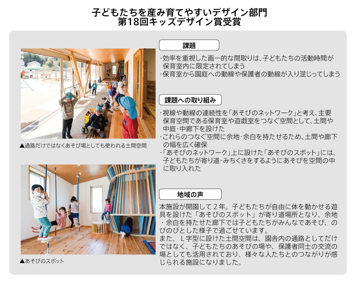 第18回キッズデザイン賞受賞 土間や中庭など「あそびのネットワーク」で子ども・保護者・職員がつながる こども園