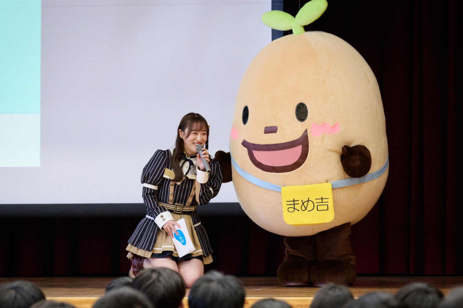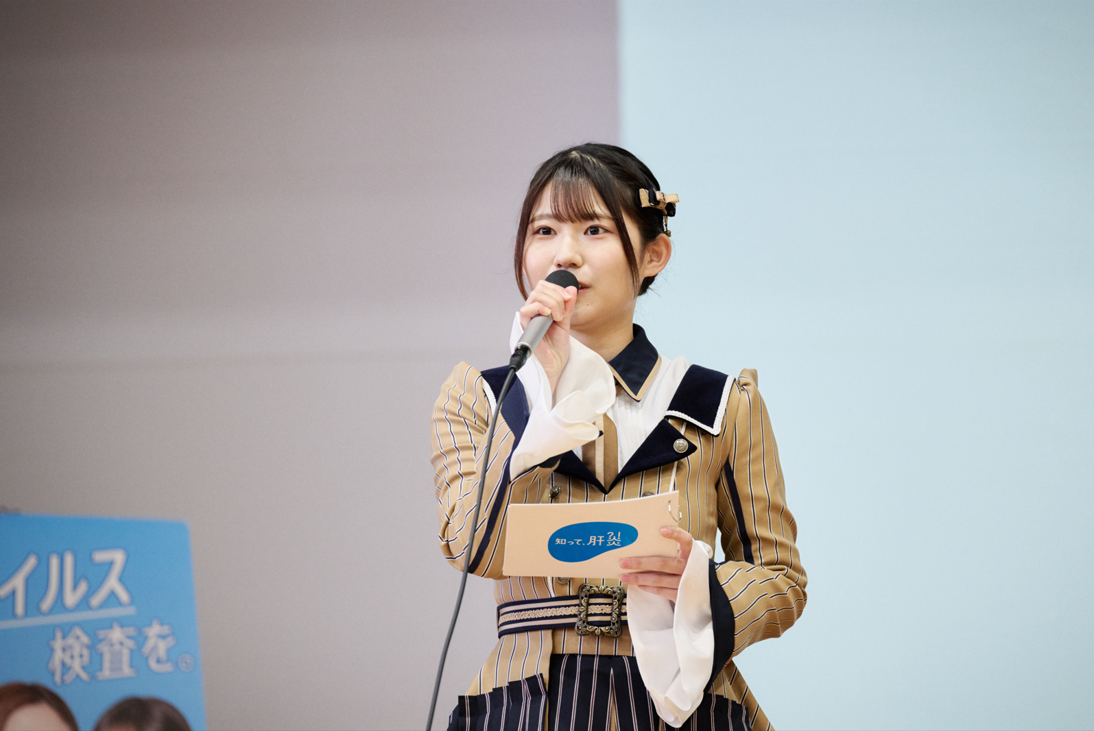 終盤には岡崎市の健康・食育キャラクターであるまめ吉も登壇し、「岡崎市では40歳以上でまだ1度も肝炎ウイルス検査を受けていない方は無料で検査を受けることができます。ご家族で対象となる方がいれば、検査を無料で受けられる券を送っているので、是非、検査を受けていただきたいです。」と岡崎市における検査体制について伝えました。