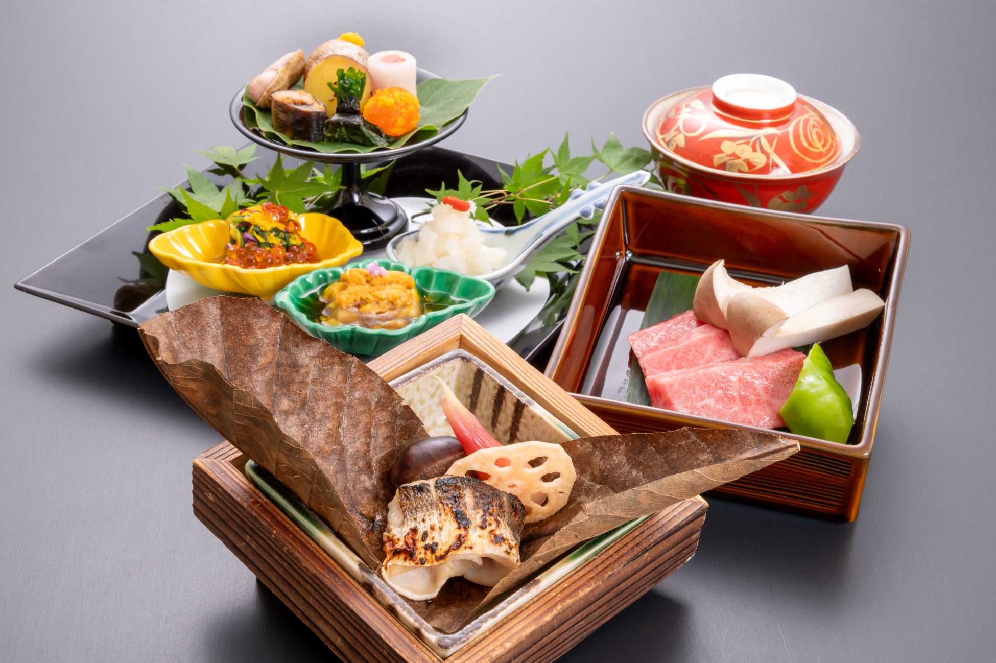 食材にこだわった和食をご提供しており、それぞれに趣の異なる和室の客室でお楽しみいただける部屋食や