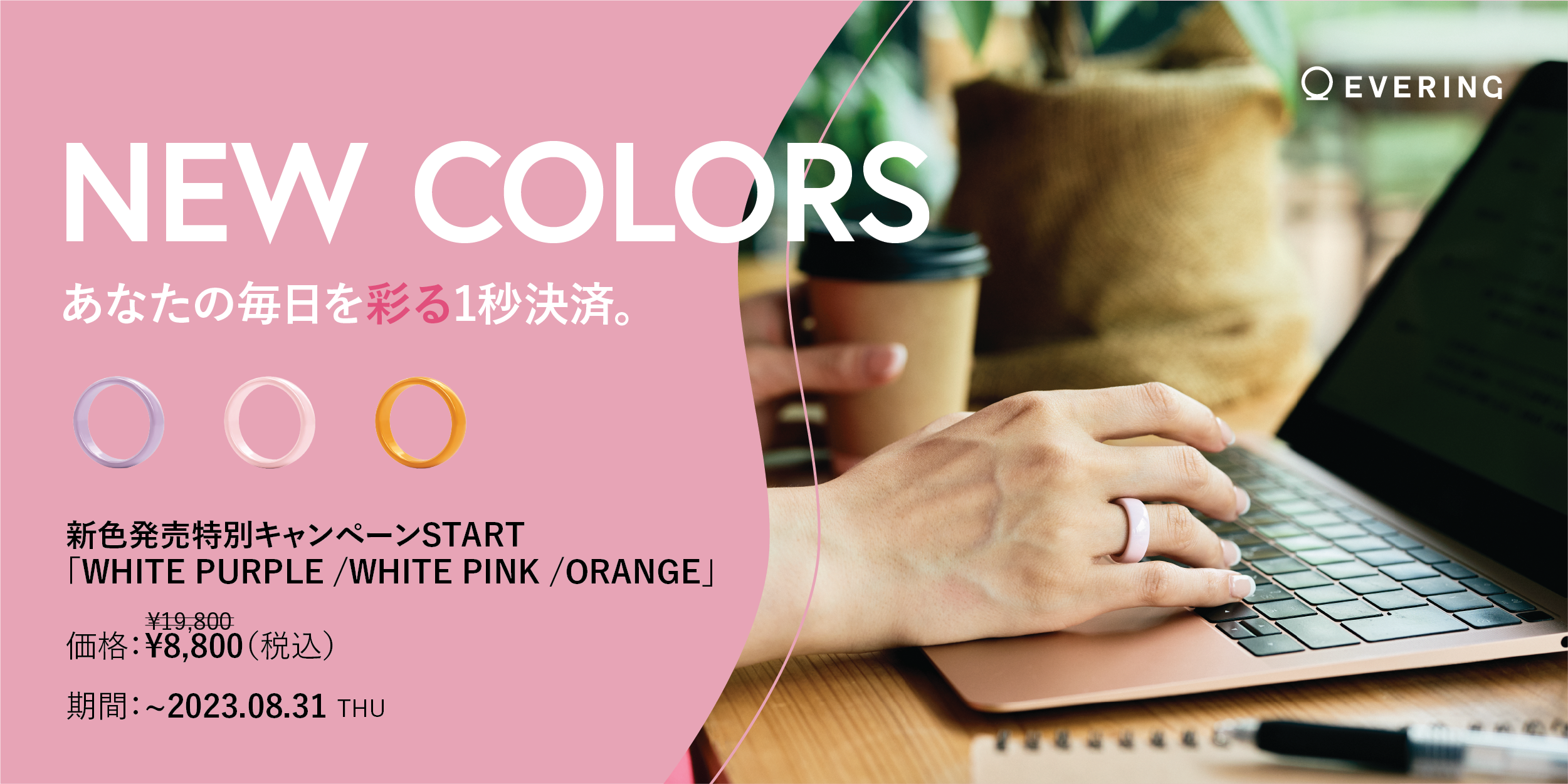 スマートリング「EVERING」に待望の新色が追加!パープル / ピンク / オレンジ が7月11日(火)より数量限定で発売