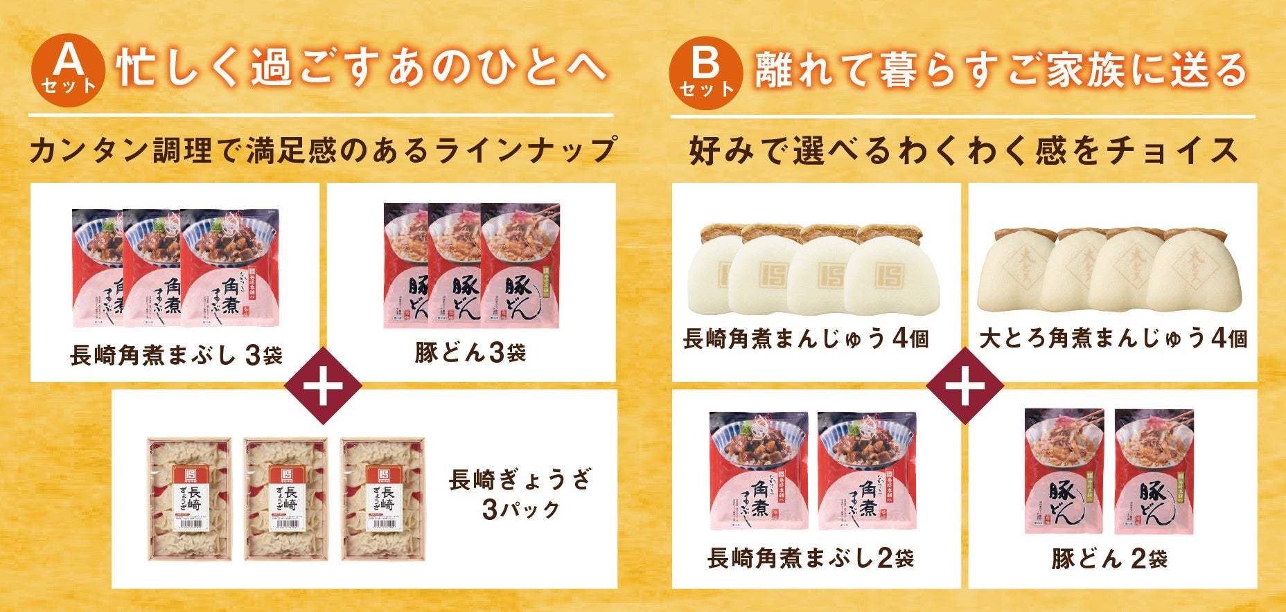 長年、多くの方から支持されている「長崎角煮まんじゅう」をはじめ、極上の柔らかさの「大とろ角煮まんじゅう」は肉好きの方に、まろやかなチーズとタレの相性を楽しめる「チーズ角煮まんじゅう」はお子さまに大好評。家族みんなが大満足の詰め合わせギフトです。