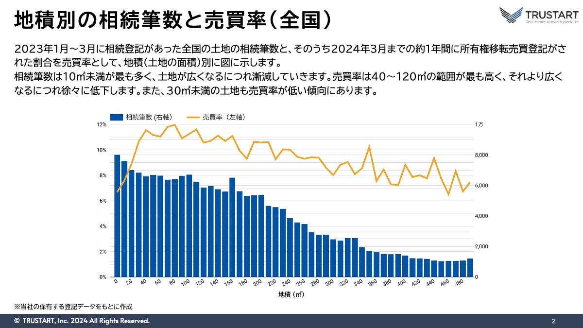 TRUSTART、相続登記後の土地の面積や地価による売買率変化の調査結果を発表