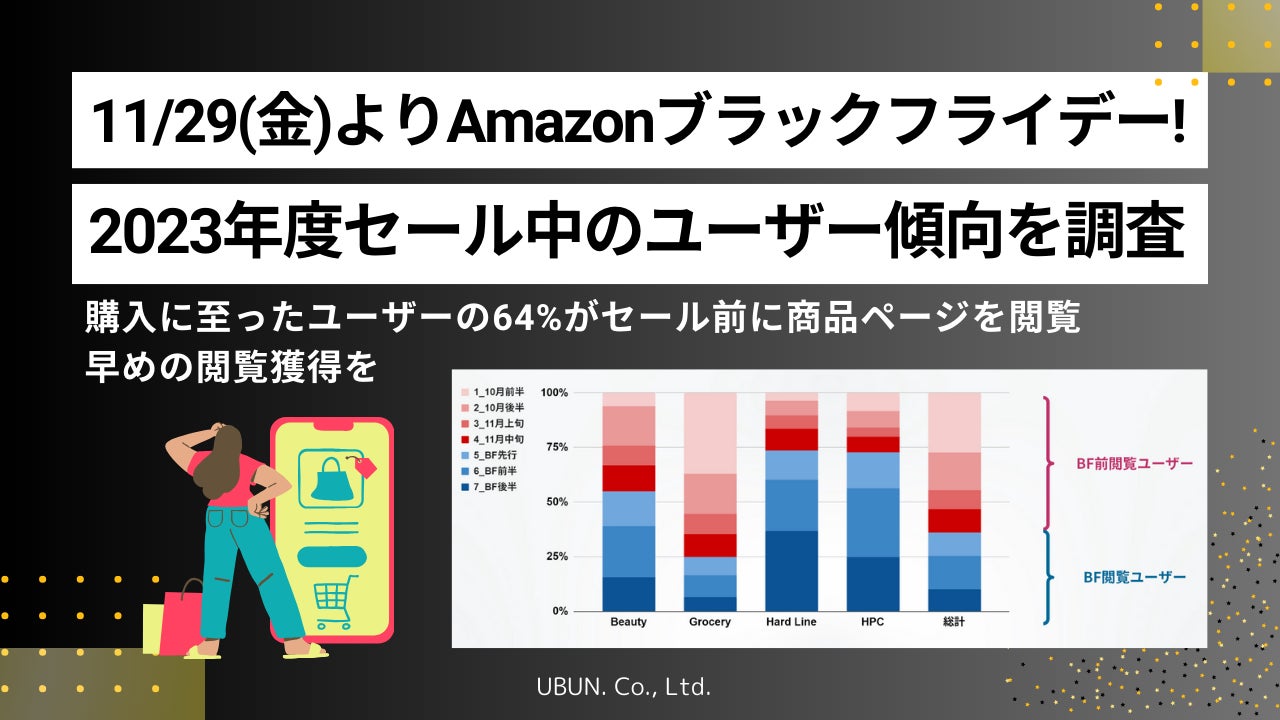 株式会社ウブン(本社:東京都港区、代表取締役社長:森岡健太郎)は、Amazon Marketing Cloud(以降AMC)と同社が開発運用するAmazon売上&広告レポートの自動化ツール「Ubun BASE」を連携したより精度の高いAmazonマーケティング支援を行っております。今回はAMCを用いて、2023年11月24日(金)〜12月1日(金)に実施されたAmazon「ブラックフライデー」期間中のユーザー動向を調査しました。